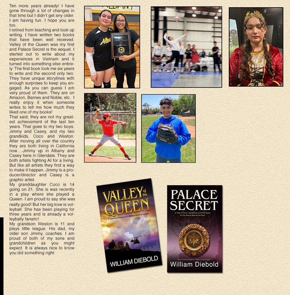 I have written two books, Valley of the Queen and a sequel Palace Secret. They have both been well received and there is some discussion about making them into movies. I will believe it when I see it but agents are talking about it.