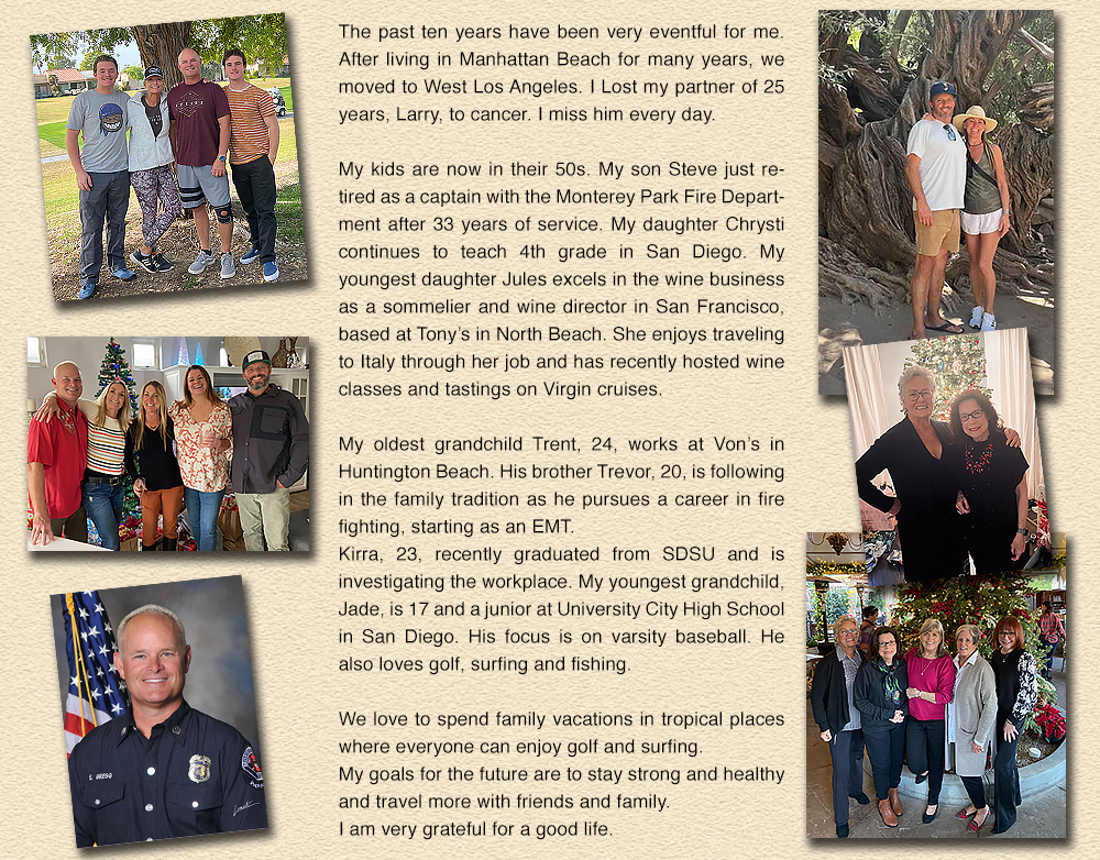 College, marriage, three kids, a job in the medical field at UCLA, grandchildren.